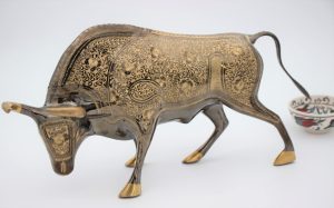 Hand Crafted, Ornate Brass Charging Bull 40cm