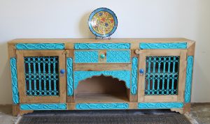 Hand Carved Entertainment Unit With Antique Grates 2 Doors And Arabian Arch