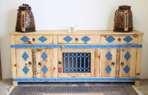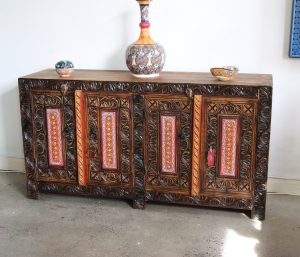 Hand Carved 4 Door Lowboy With Hand Painted Doors