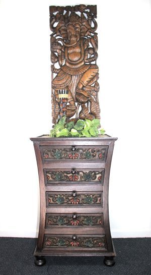 Handcrafted Rattan Med Tallboy With Coloured Carving