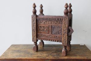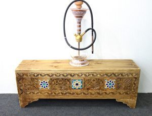 Hand Carved Wooden Trunk With Colourful Ceramic Tiles A