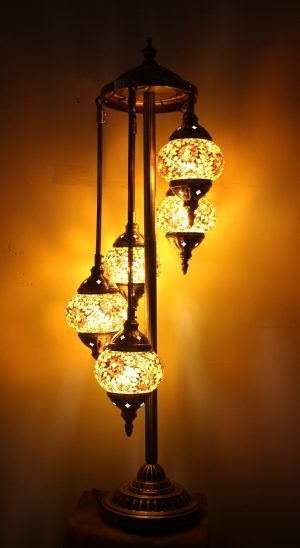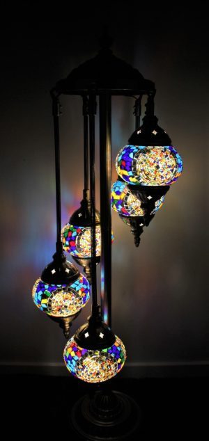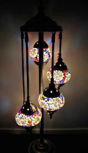 Stunning Turkish 5 Globe Floor Lamps . Lots Of Stunning Colours To Choose From. Handcrafted From Colourful Mosaic Glass. Bring The Stunning Colours Of Turkey Into Your Home.