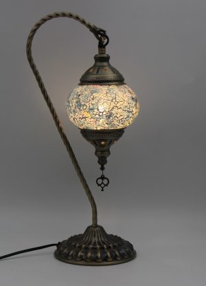 Turkish Mosaic Large Swan Lamp Cracked Teal – White
