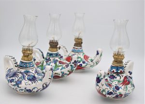 Hand Crafted Turkish Ceramic Aladdin’s Lamp In Tulip Design