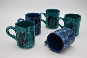 Hand Crafted Turkish Ceramic Coffee Mug In Turquoise Design
