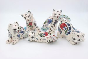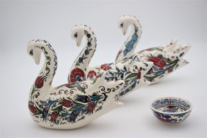 The earliest Origins can be tracked back to the Silk Road. The Turkish Ottomans were enthralled with these ceramic pieces and started to make there own amazing handmade ceramics in Turkey. They made the Turkish Ceramic Animals for the Ottoman Grand Palaces and Mosques and also plates, bowls, vases and other amazing colorful ceramics.