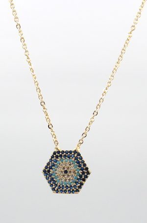 TURKISH HAND CRAFTED EVIL EYE NECKLACE IN AN OCTAGONAL PENDANT B126
