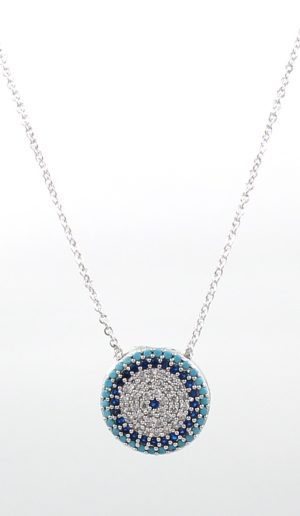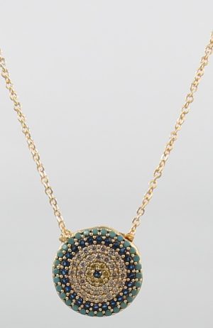 TURKISH HAND CRAFTED EVIL EYE NECKLACE IN A ROUND DISC PENDANT B132
