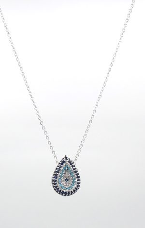 TURKISH HAND CRAFTED EVIL EYE NECKLACE IN A SILVER TEAR DROP PENDANT B133