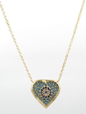 TURKISH HAND CRAFTED EVIL EYE NECKLACE IN A GOLD HEART PENDANT B135