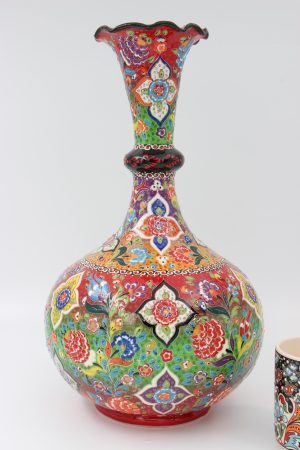 Absolutely Stunning 40 cm Hand Made Turkish Ceramic Tear Vase Colourful Relief Design