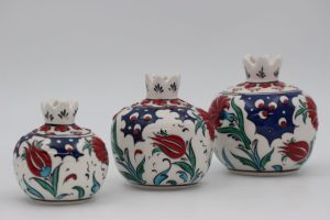 Turkish Ceramic Hand Painted Pomegranate Set of 3 Vase’s In Tulip Design