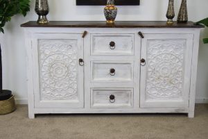 Adhira Large Sideboard Unit With Hand Carving White Wash