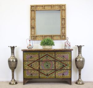 The Swat Valley is a beautiful mountainous area of the Hindu Kush that straddles the Afghan-Pakistan border. The population is predominantly ethnic Pashtun or Gujjar. Every household in The Swat Valley traditionally had a number of these chests. They were used for storing jewellery, clothes and food of all kinds, the bride’s dowry and stocks of grain. They can therefore be found in many different sizes.