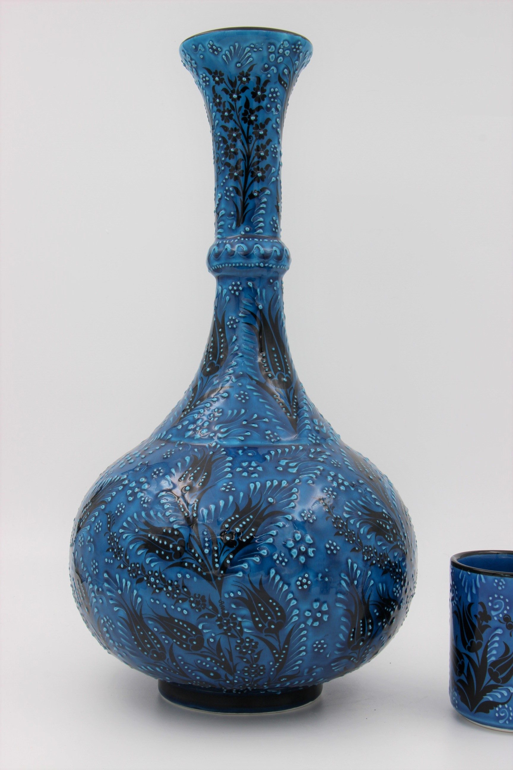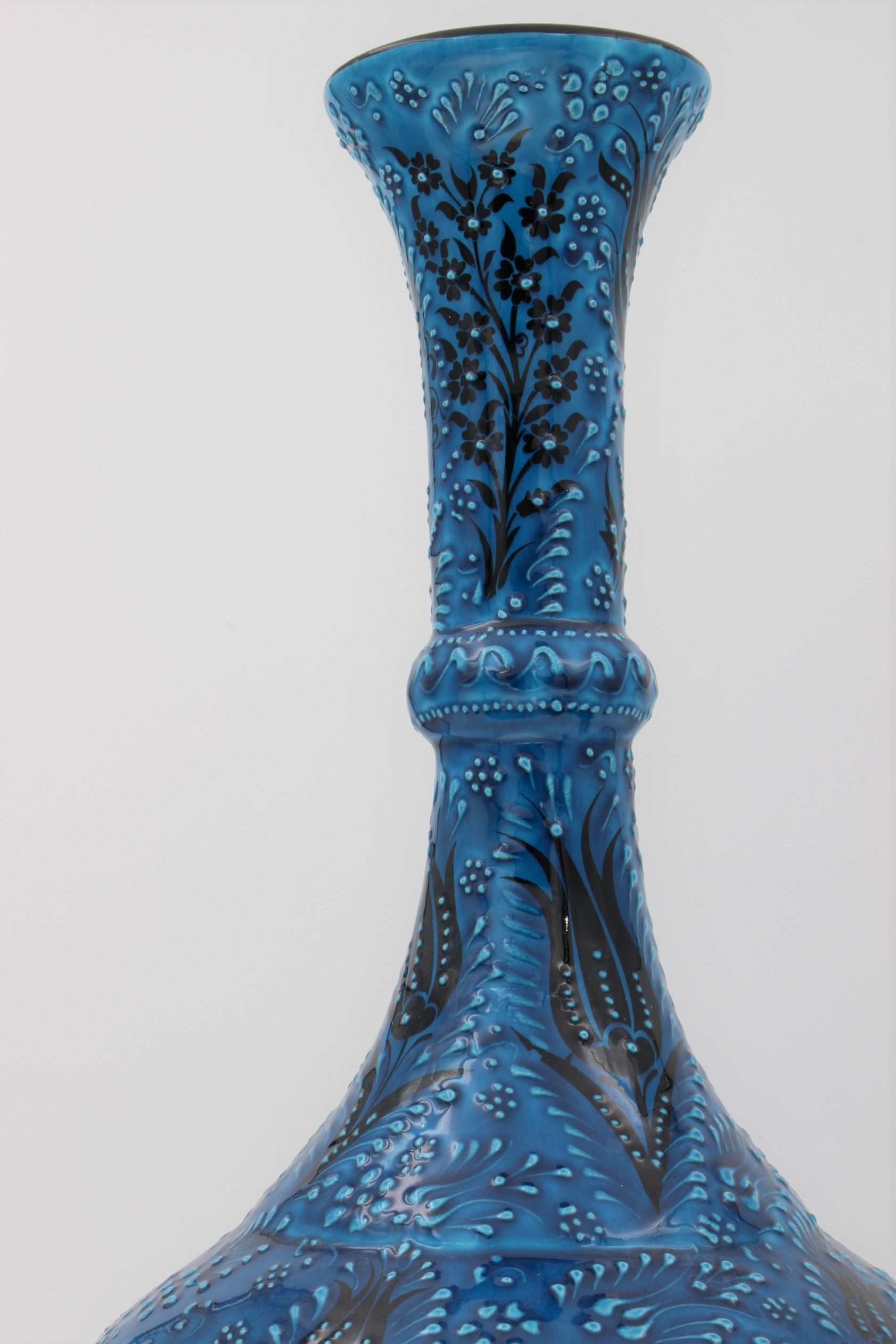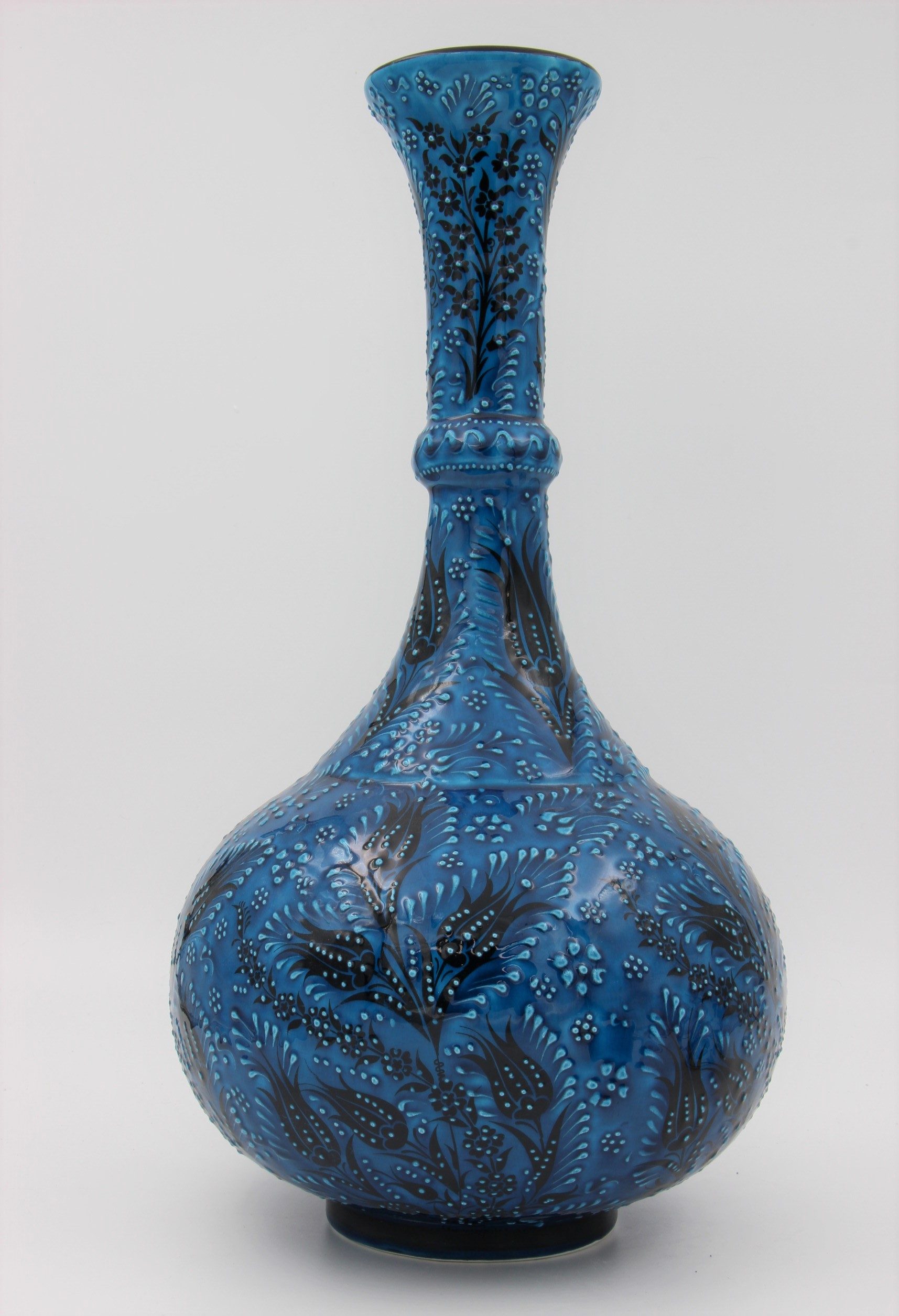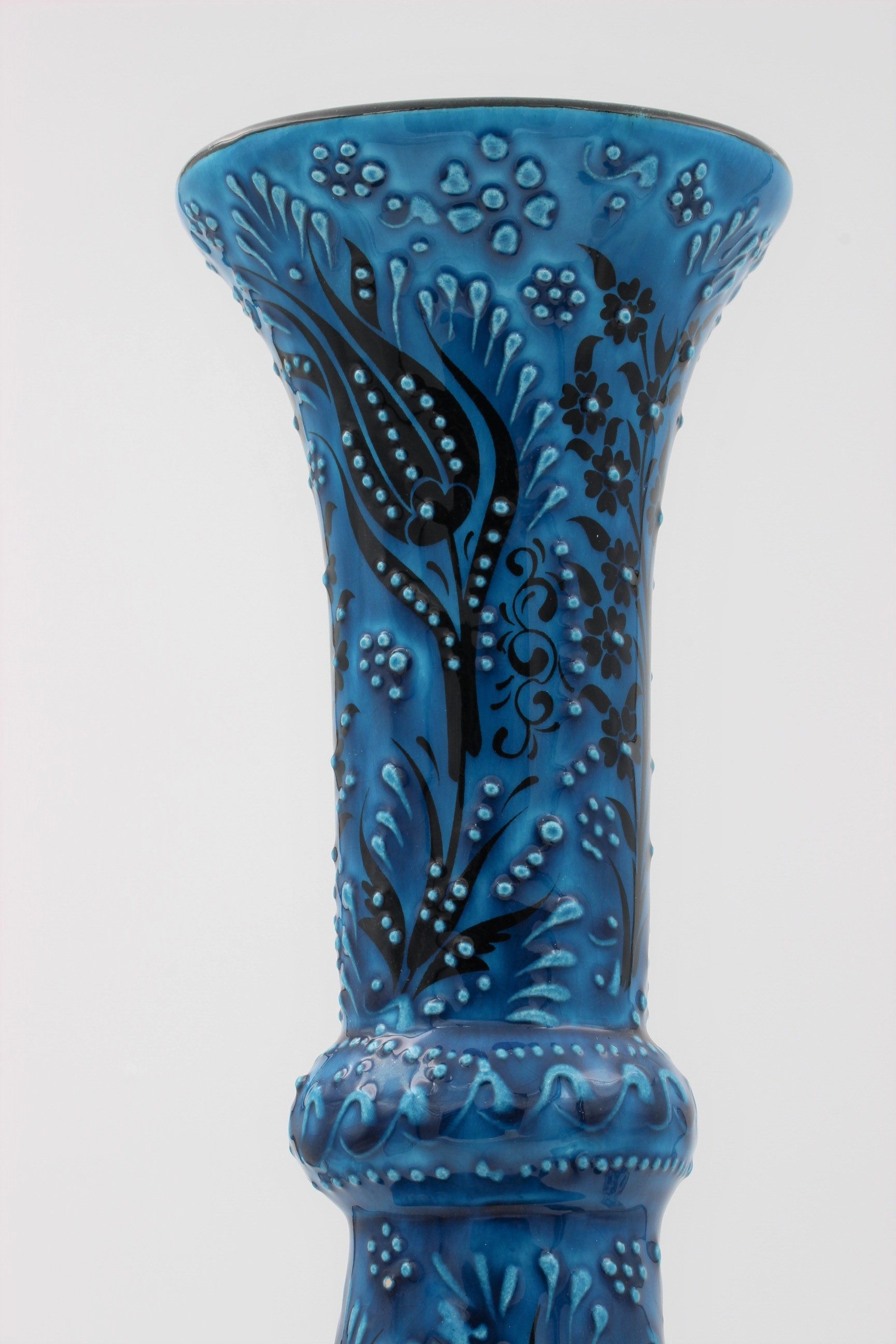 Absolutely Stunning 42 cm Hand Made Turkish Ceramic Tear Vase In Turquoise Blue