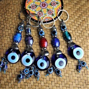 Choose from 5 Designs Hang it on your bag, use as a Key Ring or Hang it on your wall, hang it in your car with the presence of a Evil Eye in your home or on your person it is a symbol of protection. Warding off jealousy and envy and bringing good fortune as it has done for millions of people around the world for over 5000 years. Also looks fantastic and a real talking point on your wall or door.