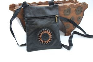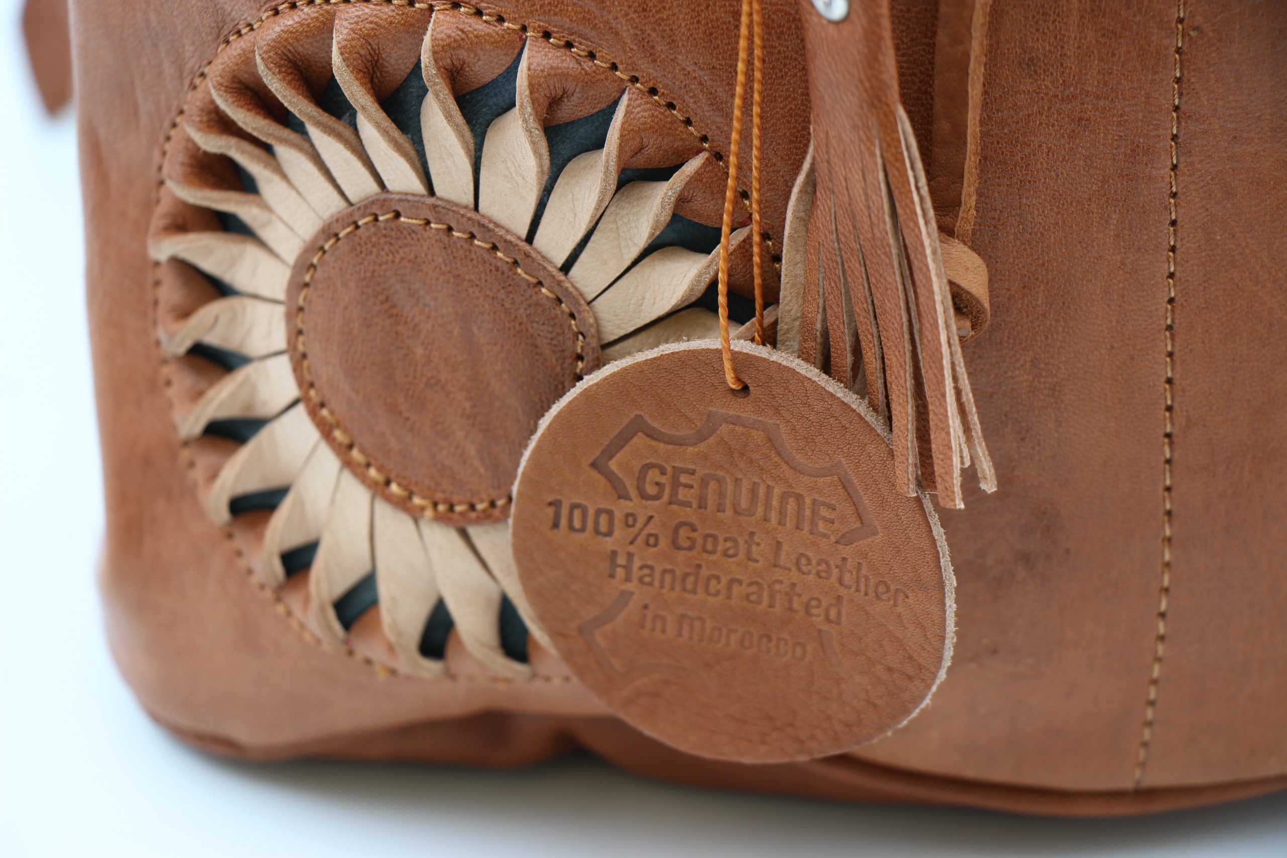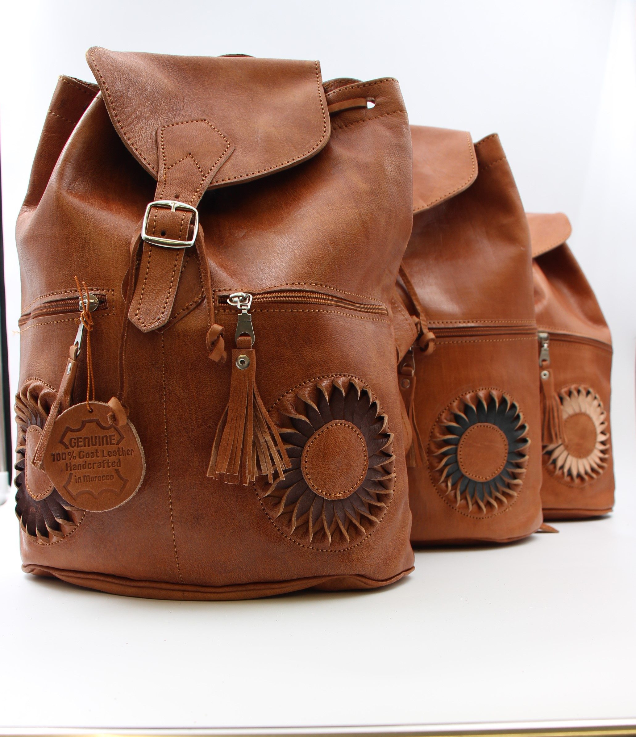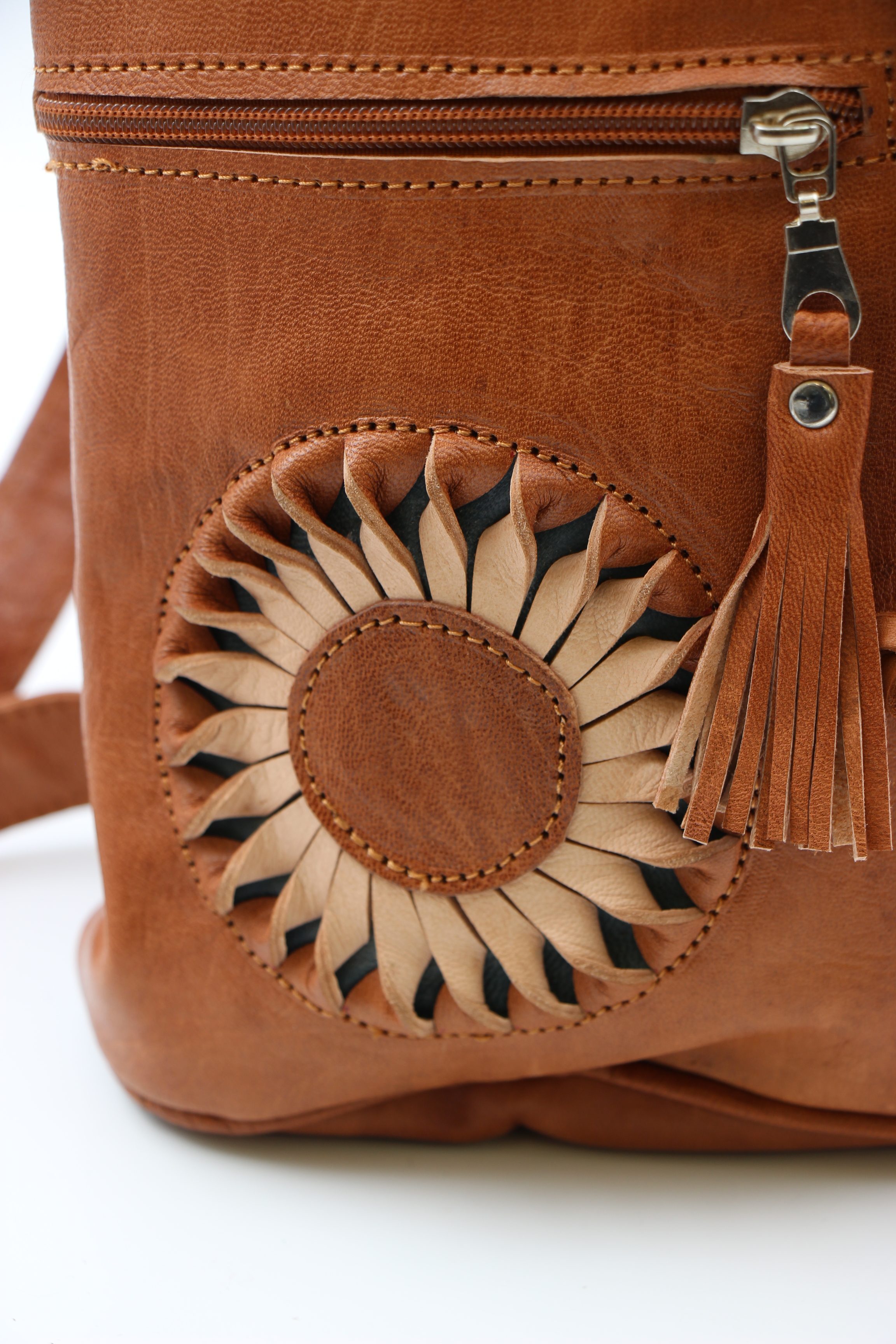 Genuine Moroccan Leather Back Pack – Tan With Cream/Tan 3D Sunflowers