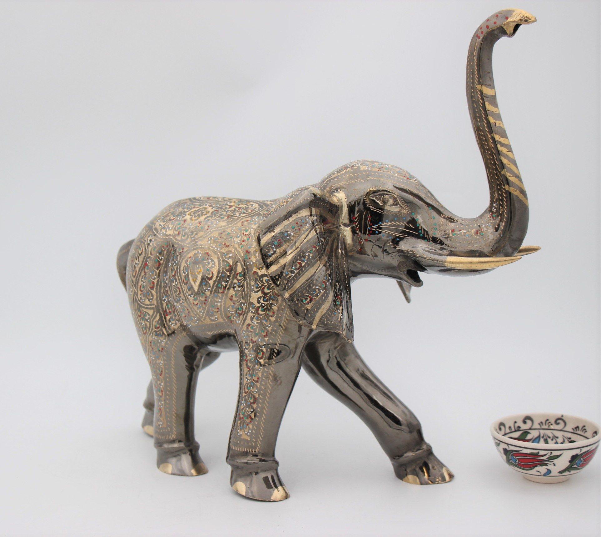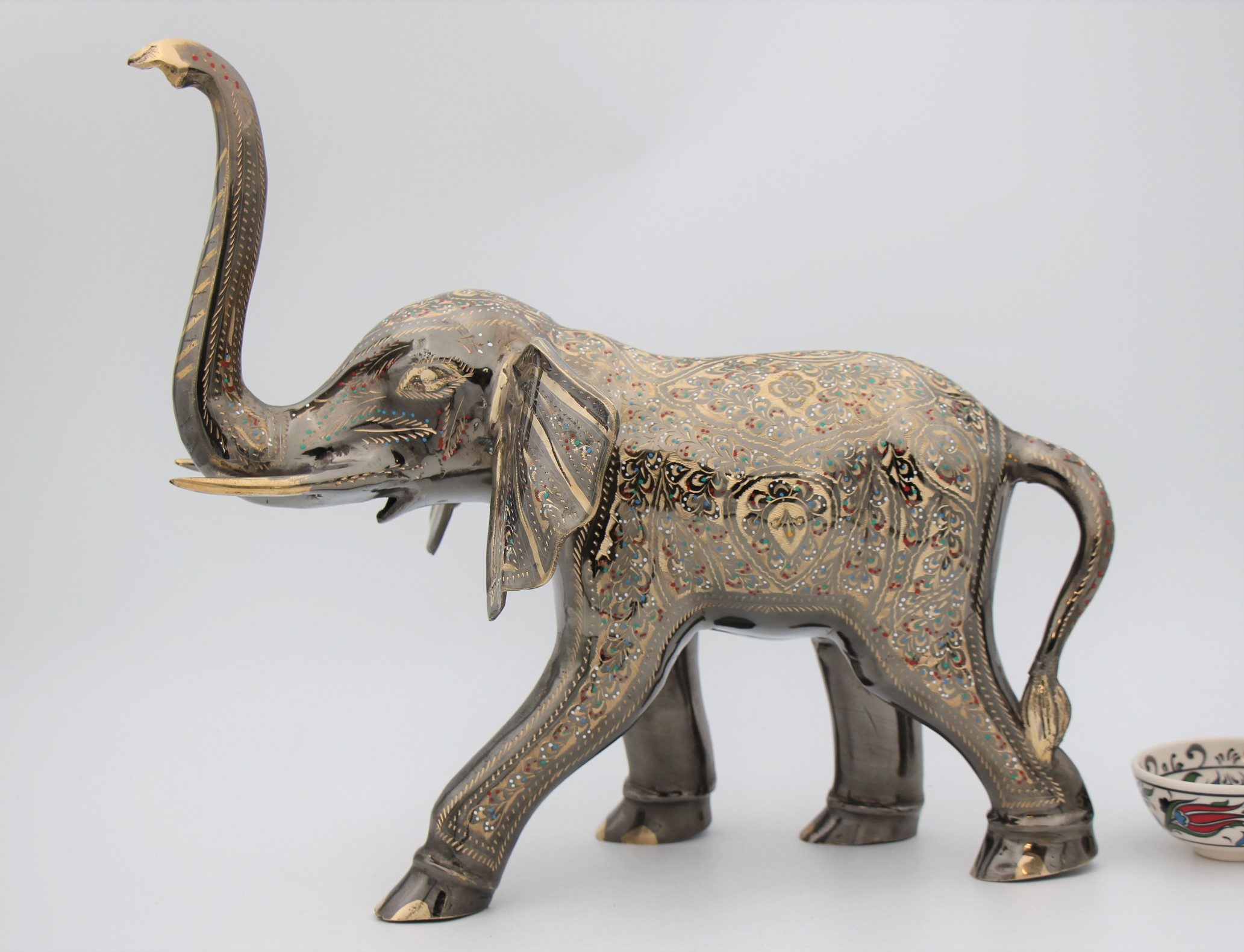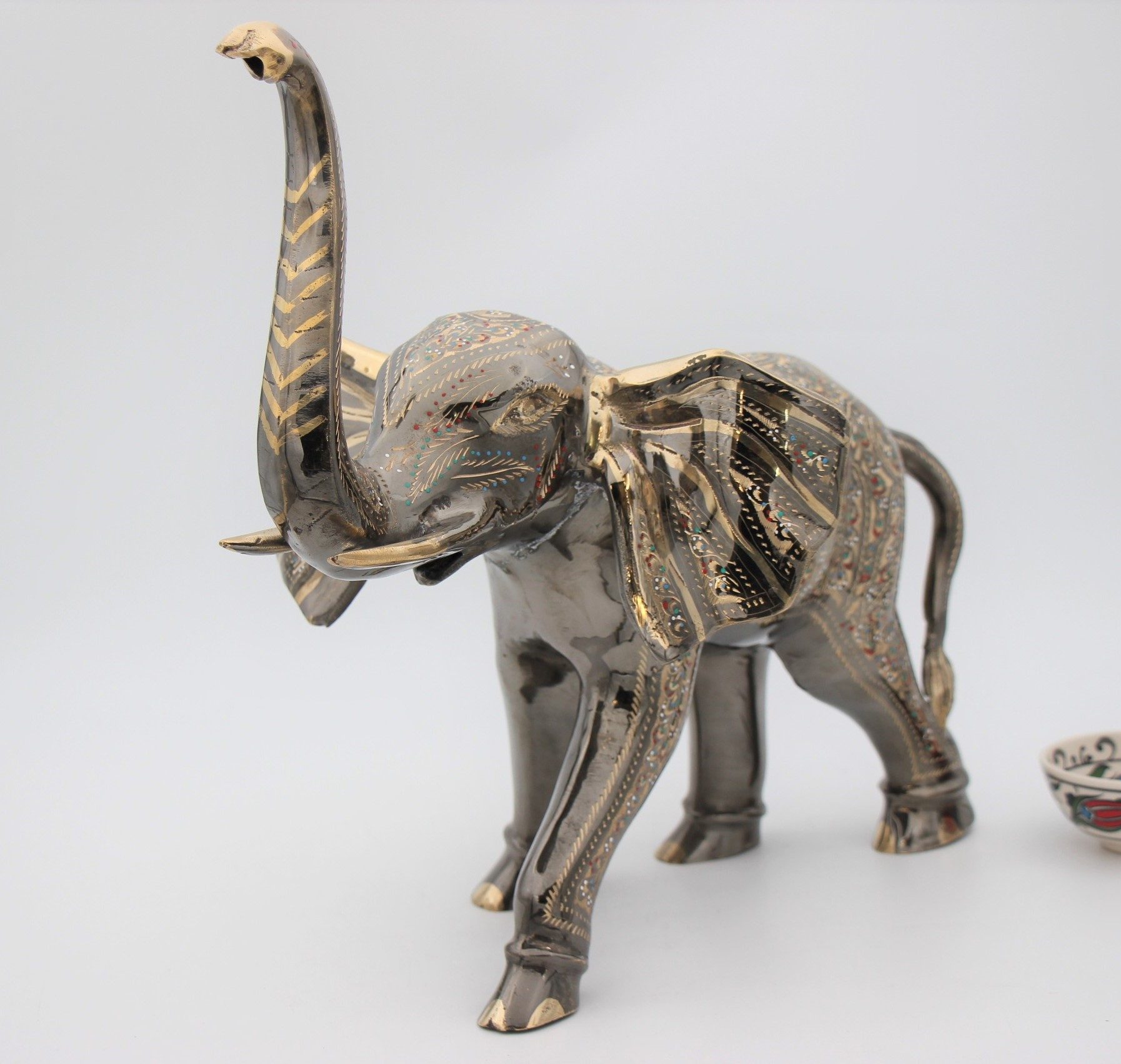 Unique Hand Crafted and Hand Etched Hand, Brass Large Brass Elephant 40 cm Trunk Up, intricately hand crafted by the amazing artisans of the Indian Subcontinent ! This amazing art has been handed down over the generations and you now can enjoy this age old tradition in your home.