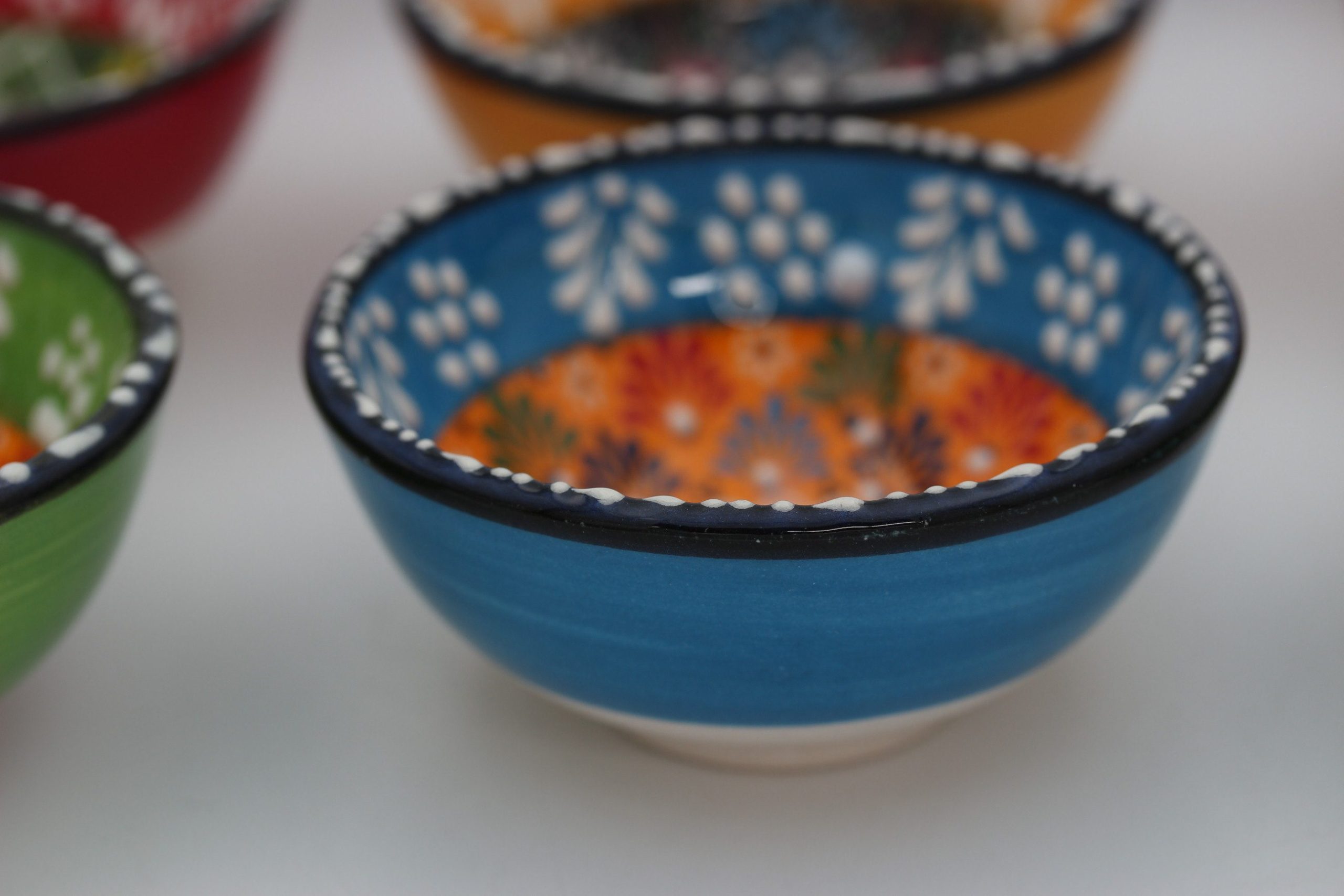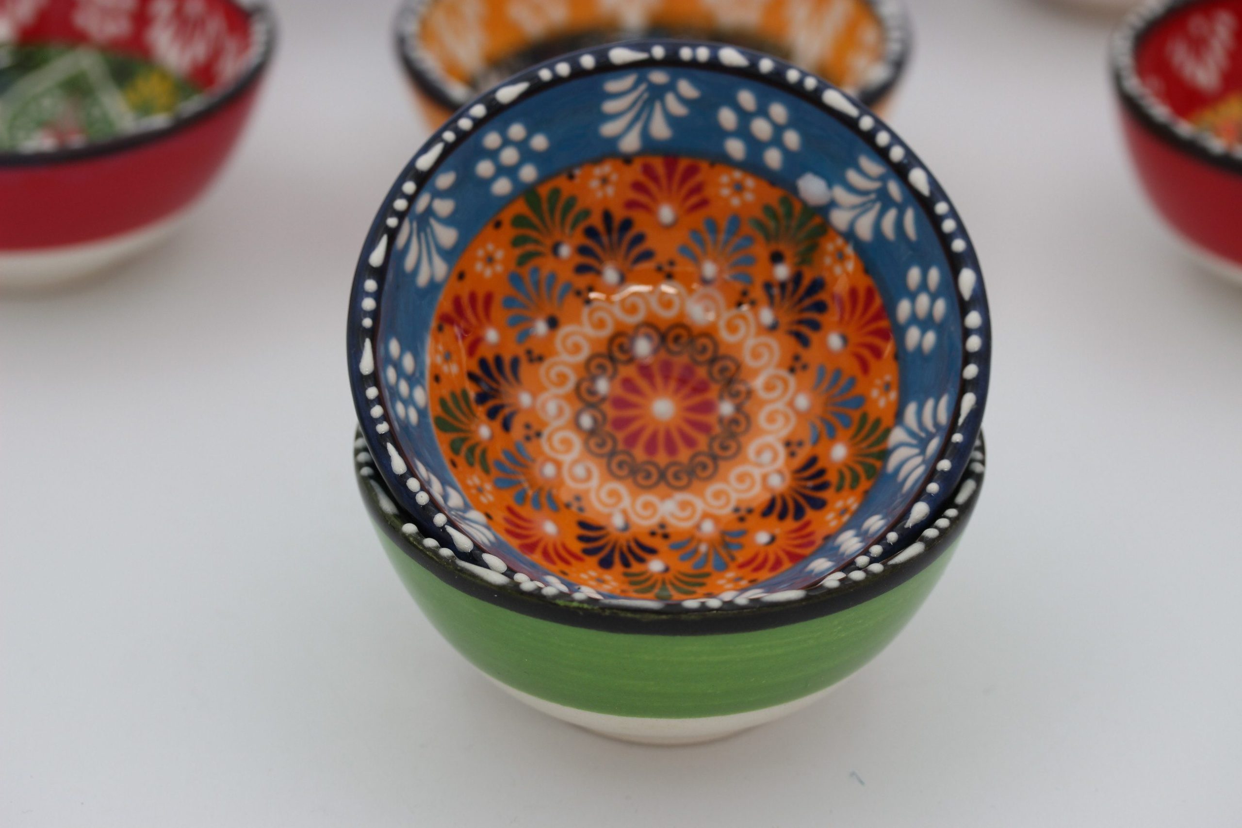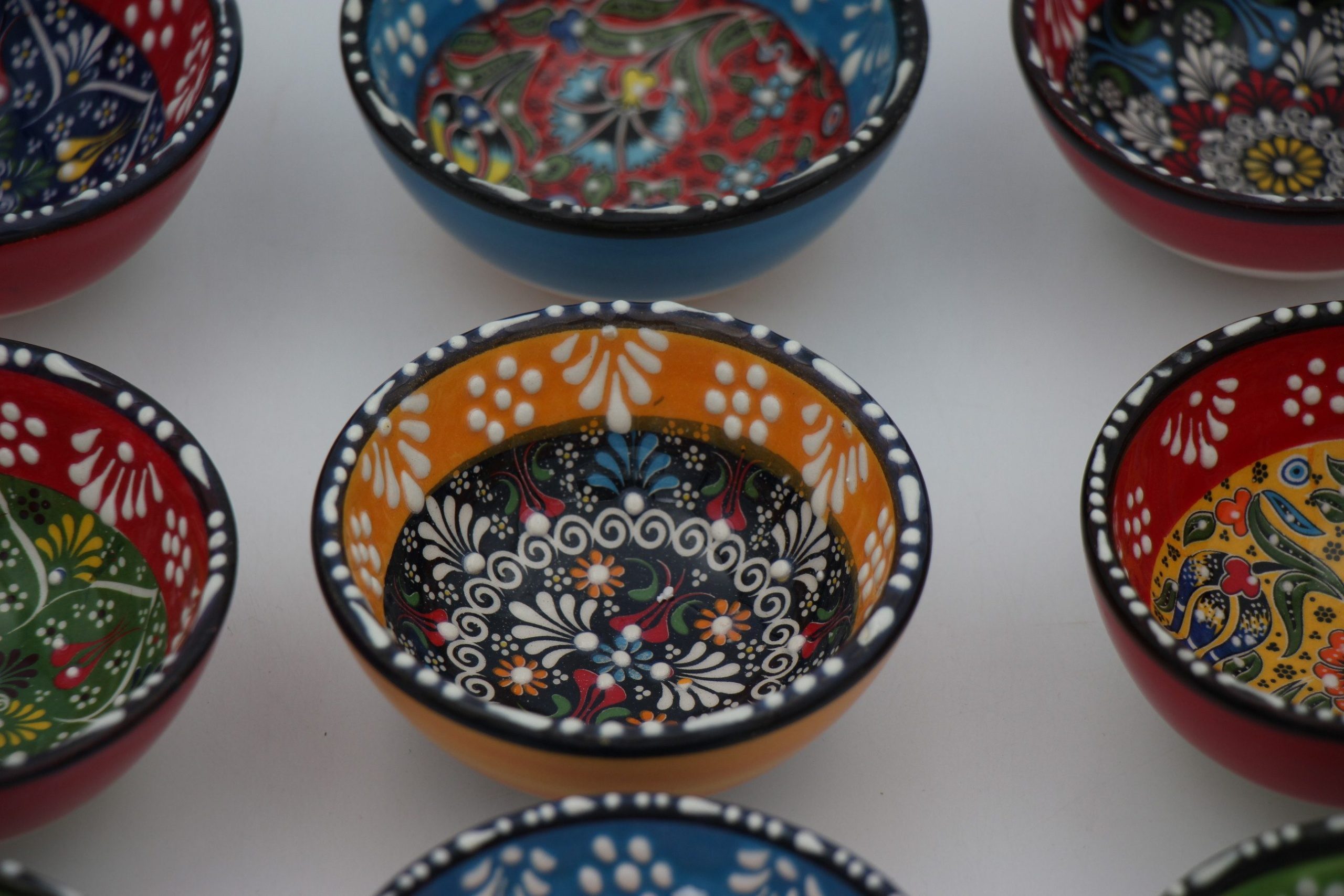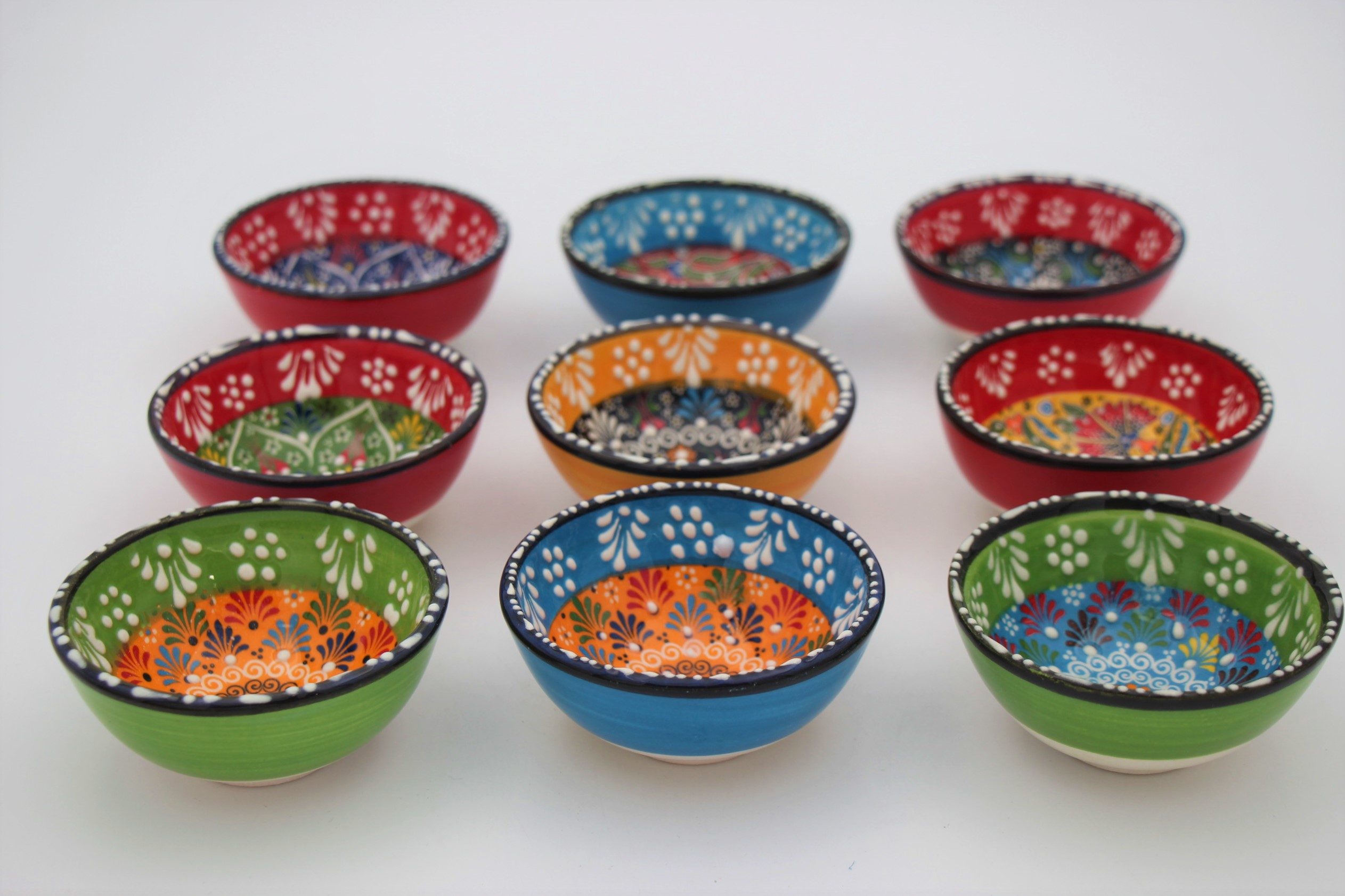 8 Cm Turkish Hand Painted Colourful Relief Ceramic Bowls