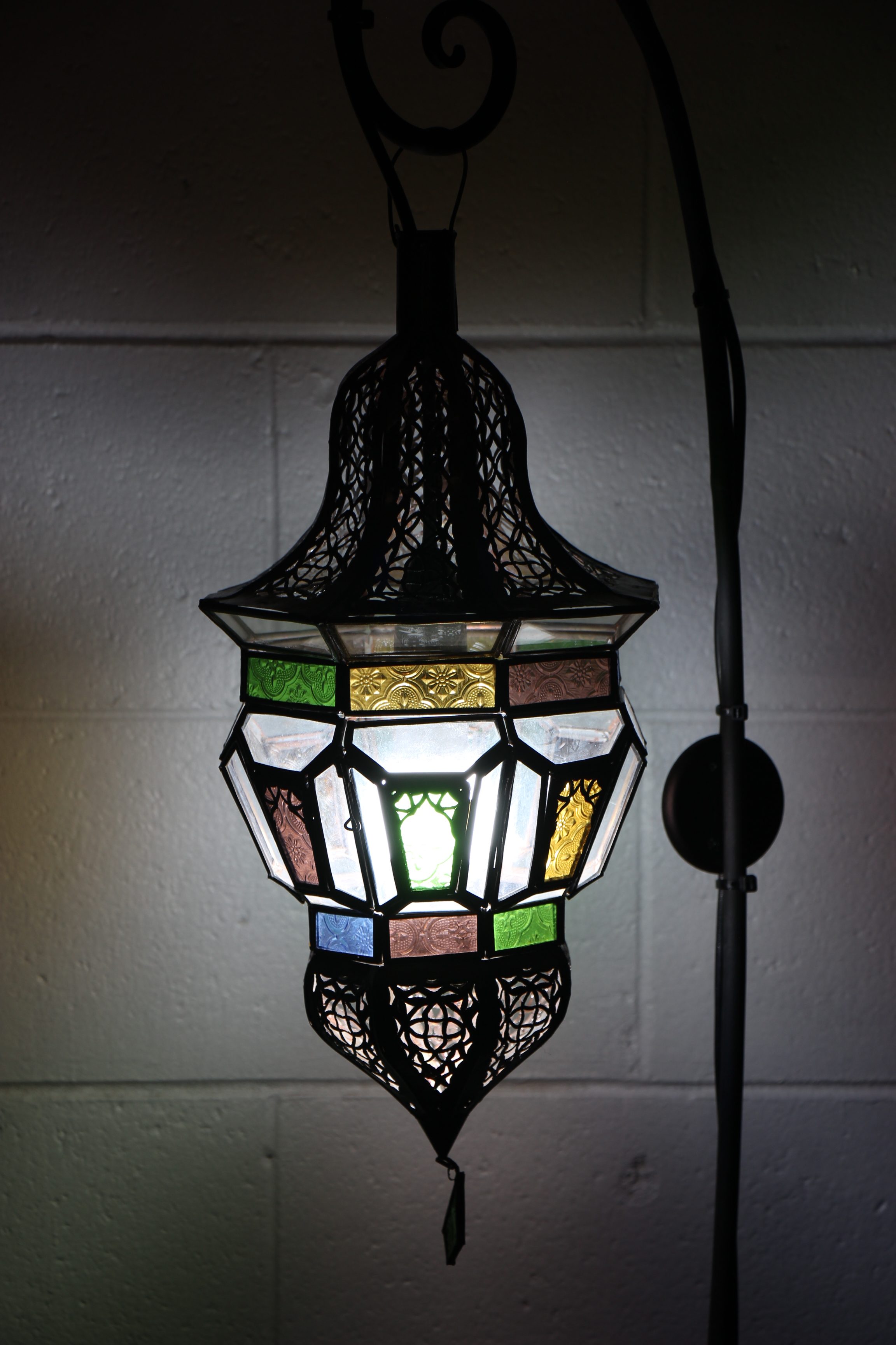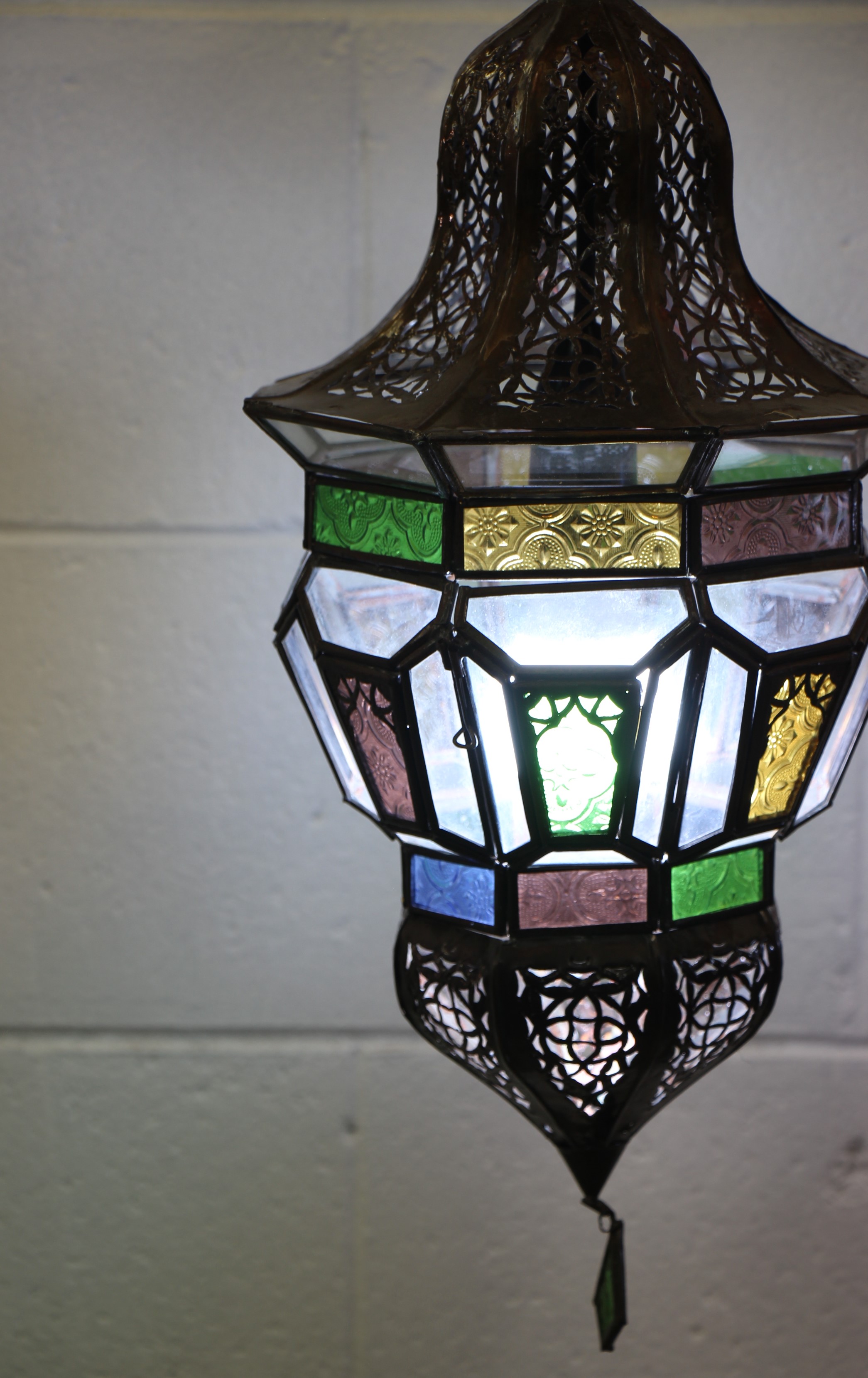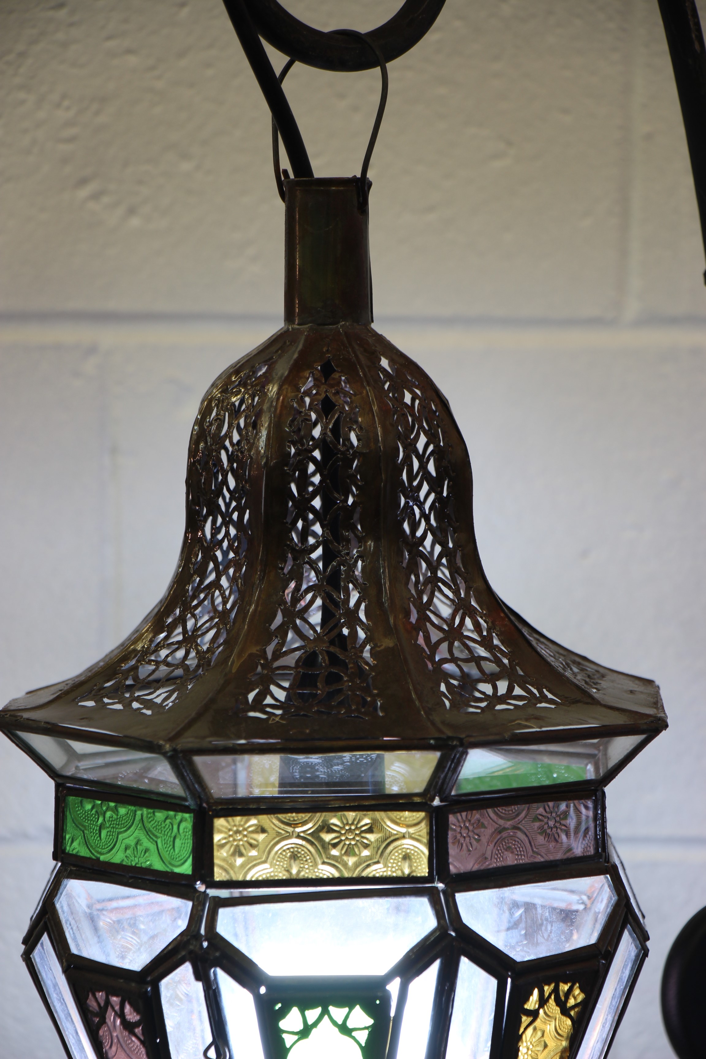 Experience the magic of Moroccan craftsmanship with our Moroccan Hexagonal Lantern – Small. Handcrafted by artisans in the enchanting and magical souks of Marrakech, these lanterns are truly stunning. Their intricate metal filigree and stained glass create unique, colorful spheres of light that will transform your home. Whether placed in your lounge, bedroom, or hallway, these lanterns exude elegance. Made from copper-coated cast iron, they can serve as a chandelier or be hung on the Moroccan Wrought Iron Stand (sold separately) or the Moroccan  Wrought Iron Wall hanging Both are at the bottom of this page