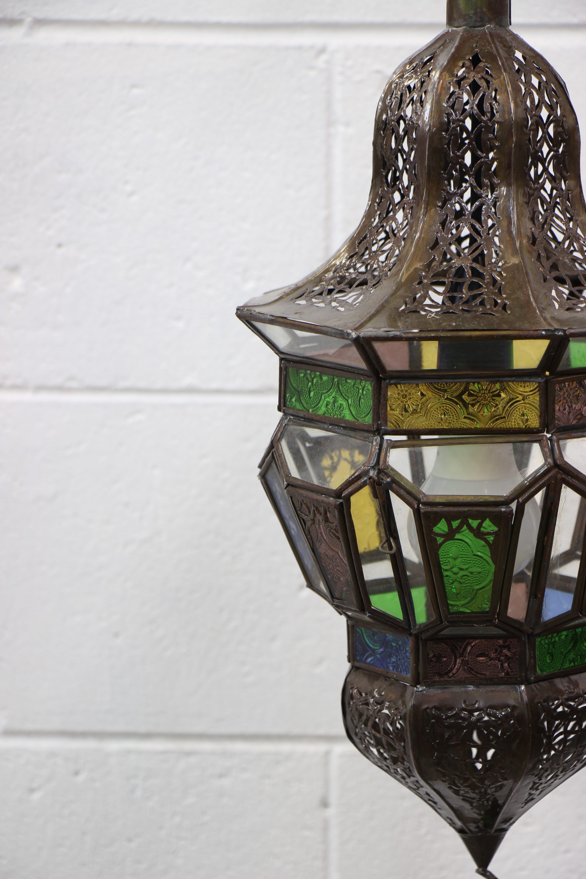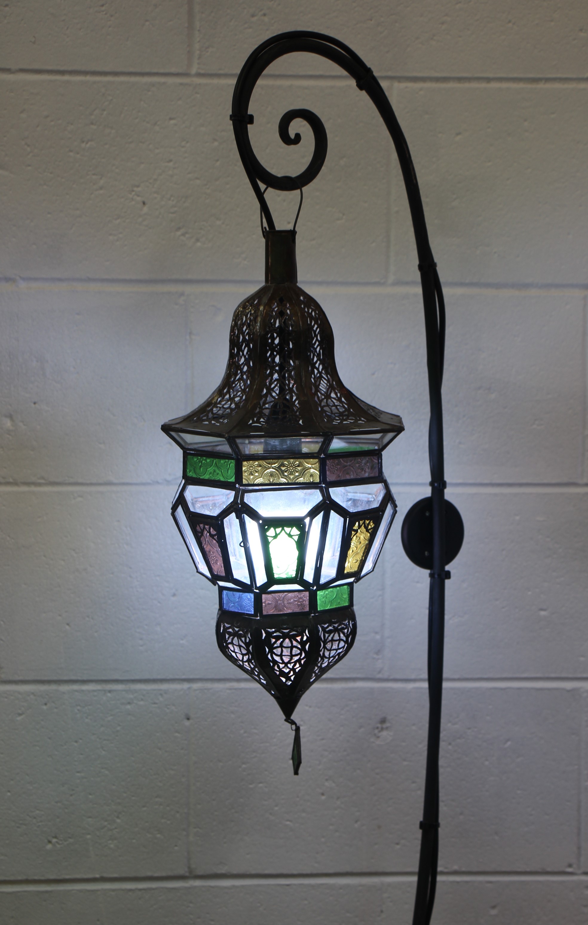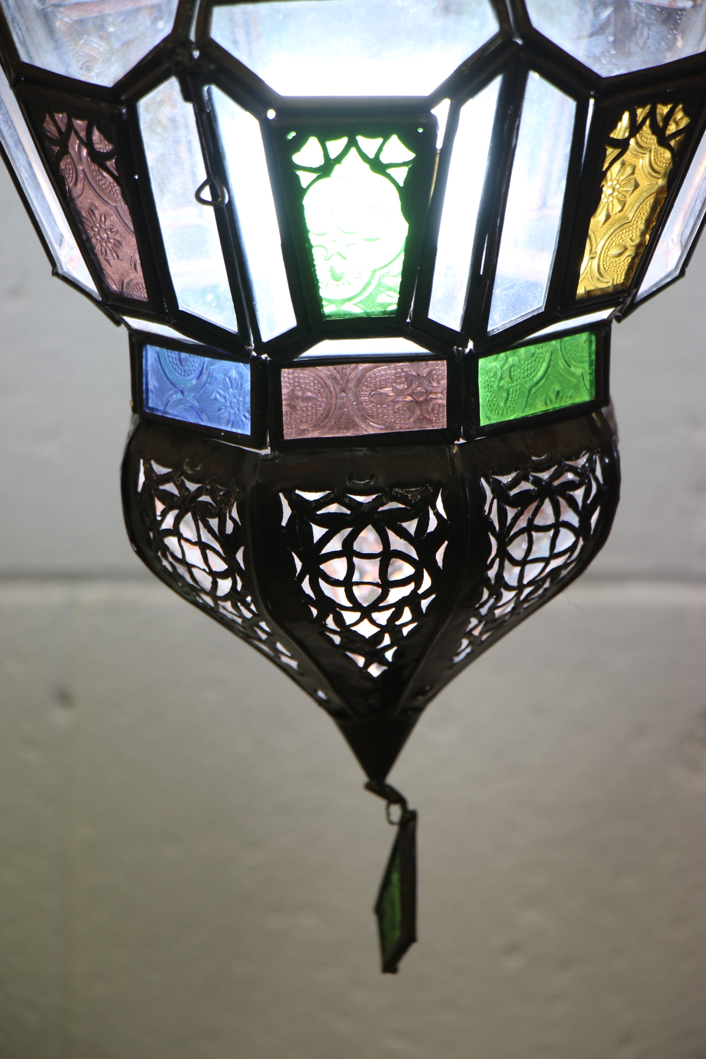Experience the magic of Moroccan craftsmanship with our Moroccan Hexagonal Lantern – Small. Handcrafted by artisans in the enchanting and magical souks of Marrakech, these lanterns are truly stunning. Their intricate metal filigree and stained glass create unique, colorful spheres of light that will transform your home. Whether placed in your lounge, bedroom, or hallway, these lanterns exude elegance. Made from copper-coated cast iron, they can serve as a chandelier or be hung on the Moroccan Wrought Iron Stand (sold separately) or the Moroccan  Wrought Iron Wall hanging Both are at the bottom of this page