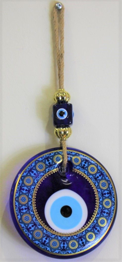 Stunning XLarge Turkish Ornate Evil Eye Wall Hanging, Hang it on your wall,with the presence of a Evil Eye in your home or on your person it is a symbol of protection. Warding off jealousy and envy and bringing good fortune as it has done for millions of people around the world for over 5000 years. Also looks fantastic and a real talking point on your wall or door.
