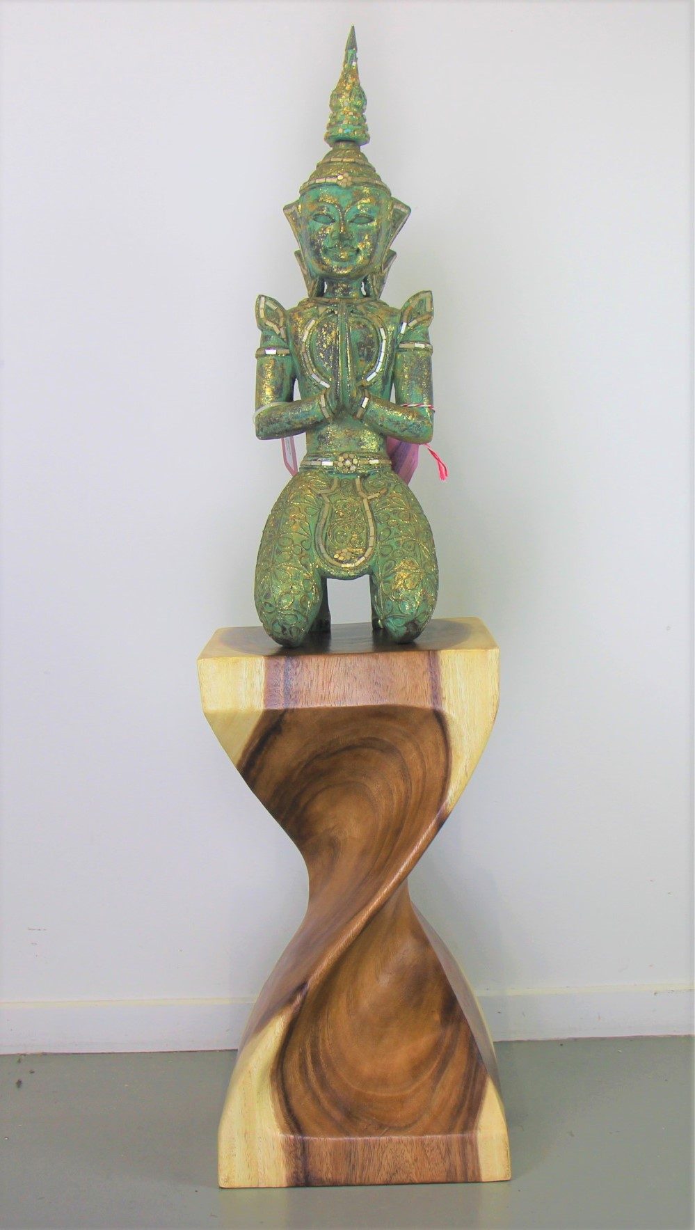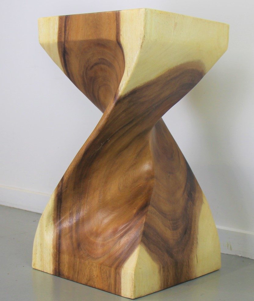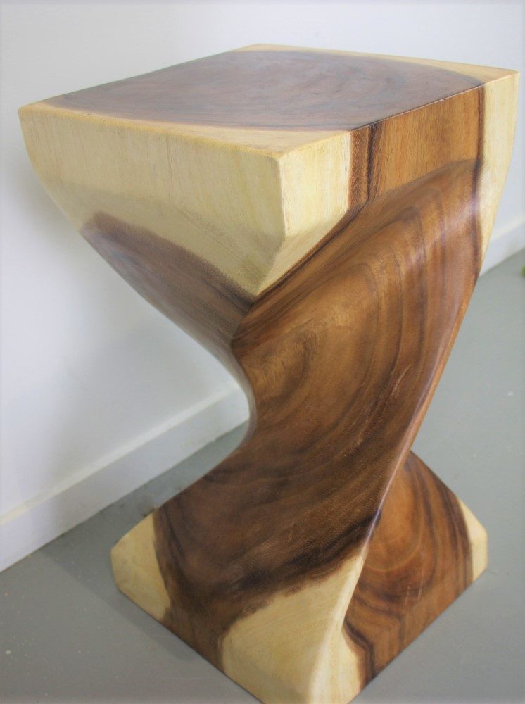Unique Single Twist Stool with square top is handmade in sustainable Acacia wood. The grain is truly beautiful. This Single Twist stool can easily double as a small coffee table and will add interest to any setting. It is in natural and has a round base and top. As our products are all hand made there may be slight variances. Dimensions Approx. 25 x50 cms