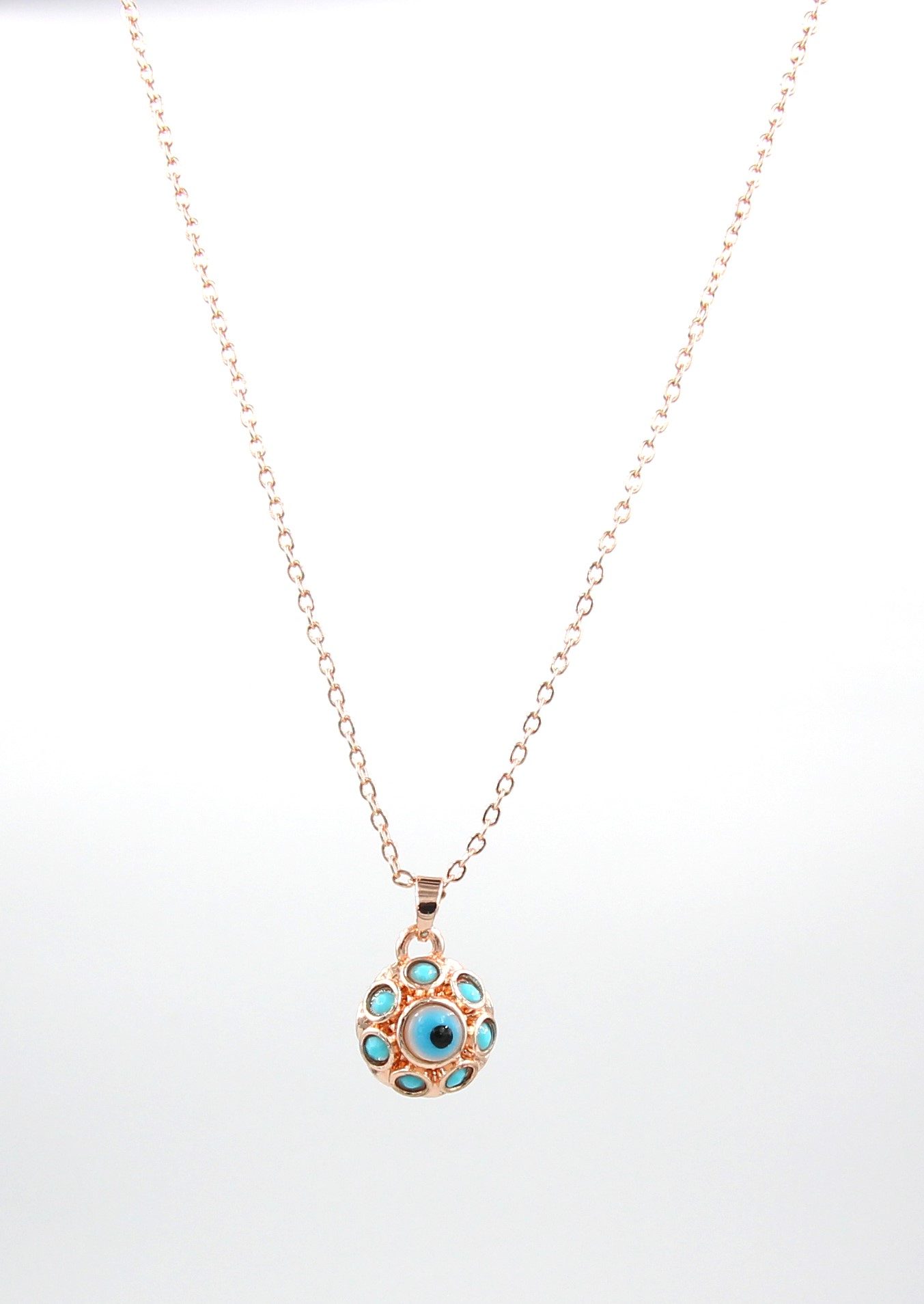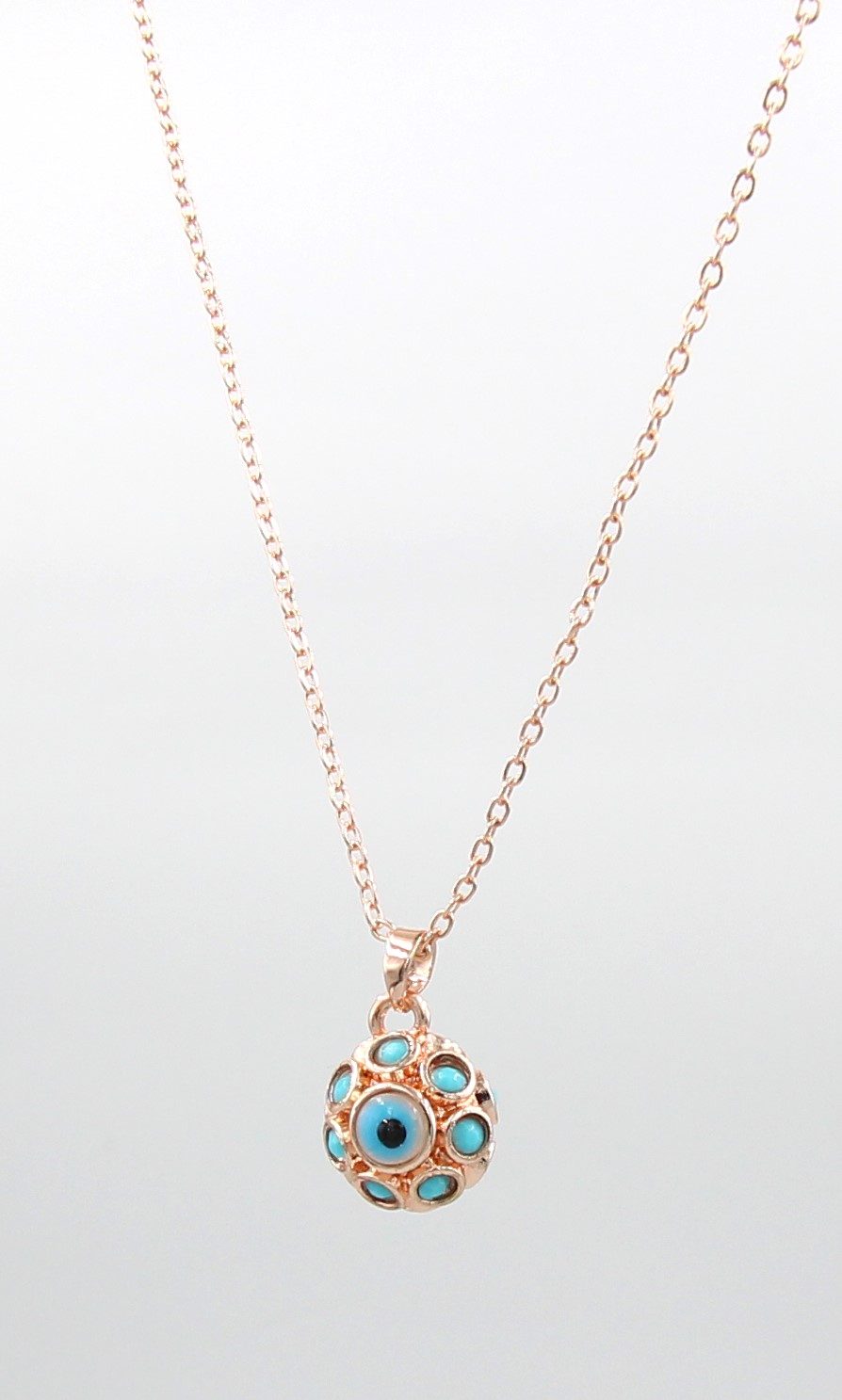TURKISH HAND CRAFTED EVIL EYE NECKLACE IN A ROSE GOLD PENDANT JT20A