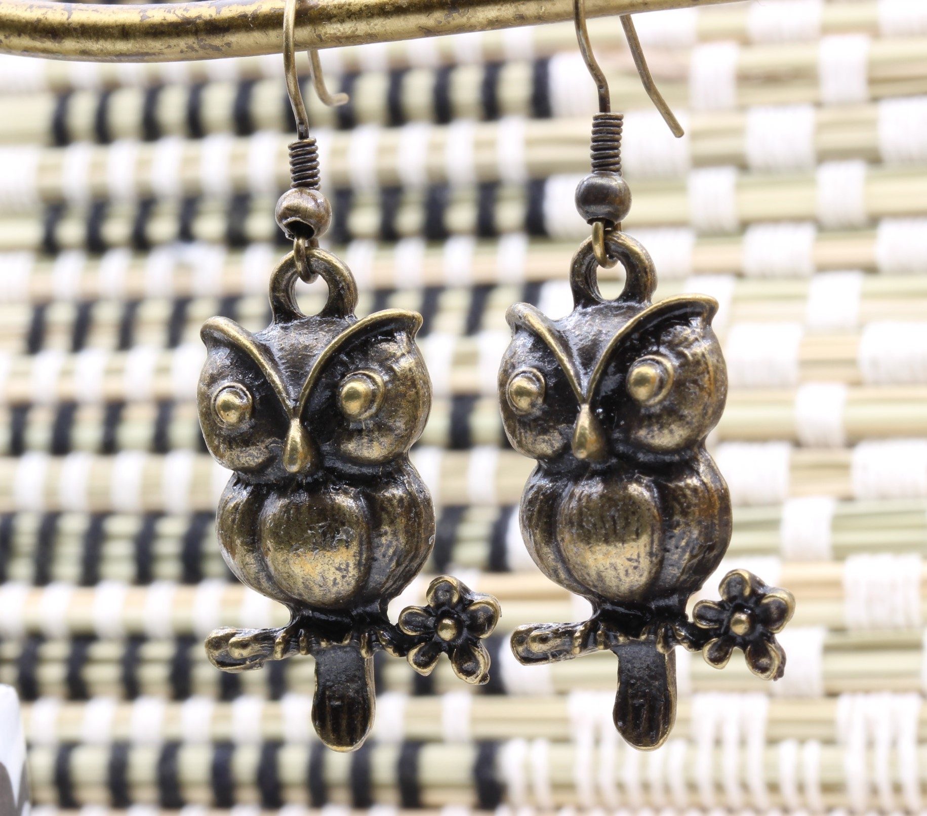 Turkish Hand Crafted Owl Metal Earrings EH3