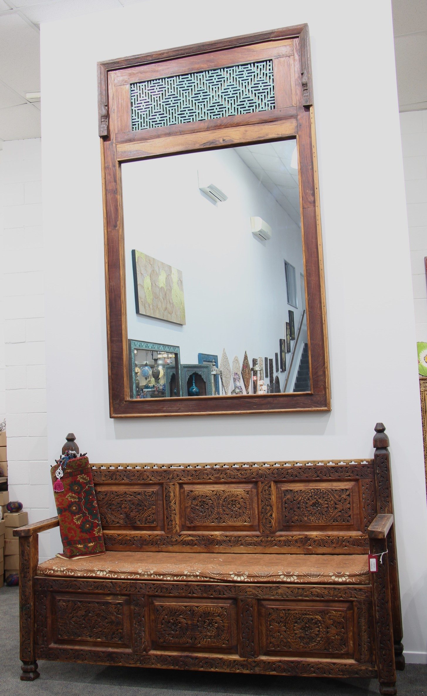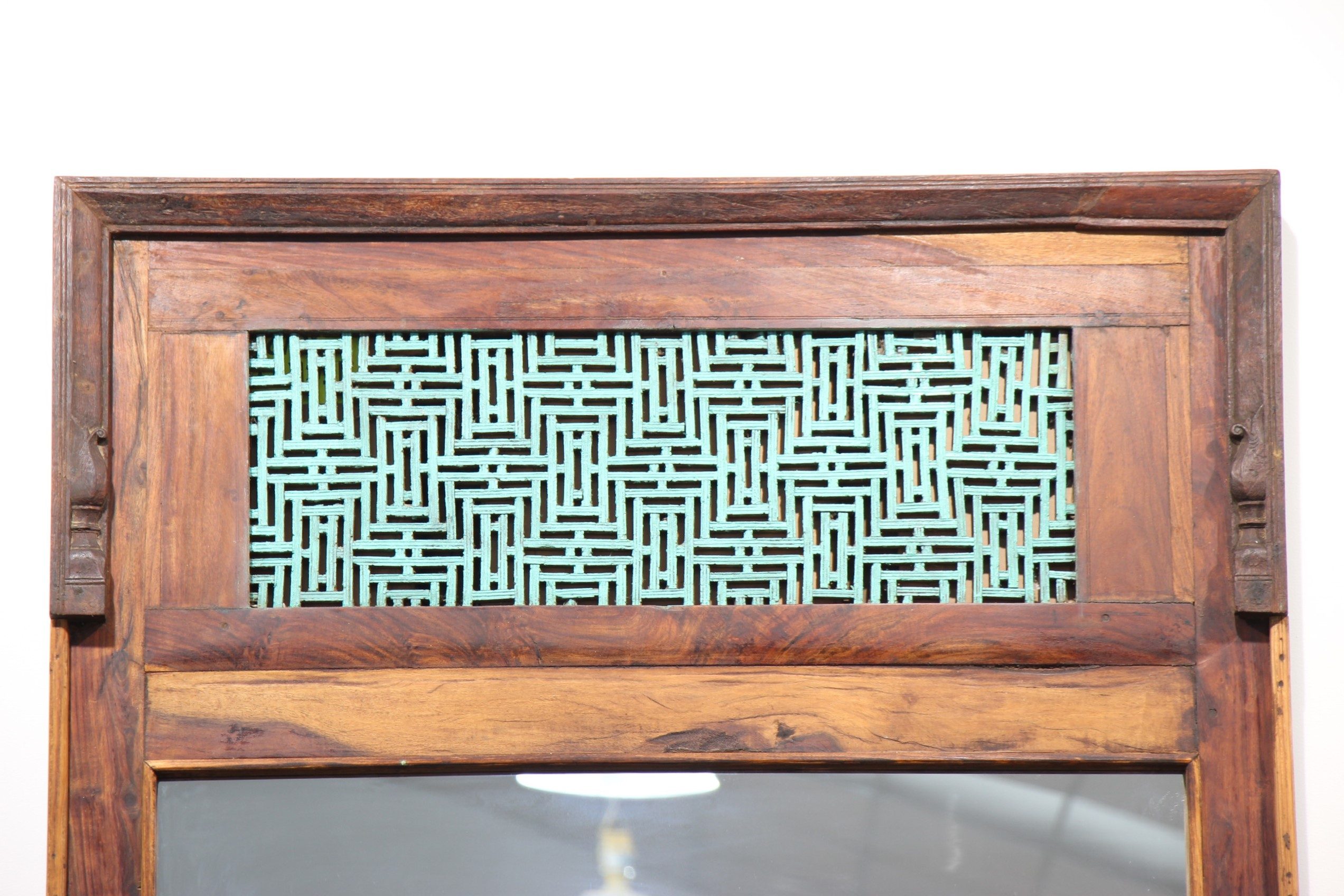 Xlarge Gareta Mirror Antique Blue Grill .Featuring An Antque Blue Wash Grill  . Artisans From This Area Are Renown As Master Craftsmen.