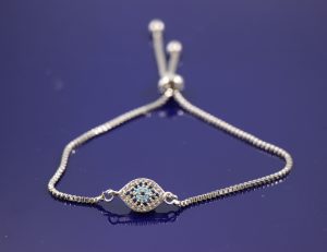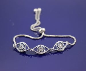 TURKISH EVIL EYE BRACELET WITH 3 EVIL EYE PENDANTS IN SILVER B92
