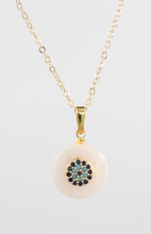 TURKISH HAND CRAFTED EVIL EYE NECKLACE IN A GOLD PENDANT JT20A