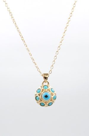 TURKISH HAND CRAFTED EVIL EYE NECKLACE IN A GOLD PENDANT JT20